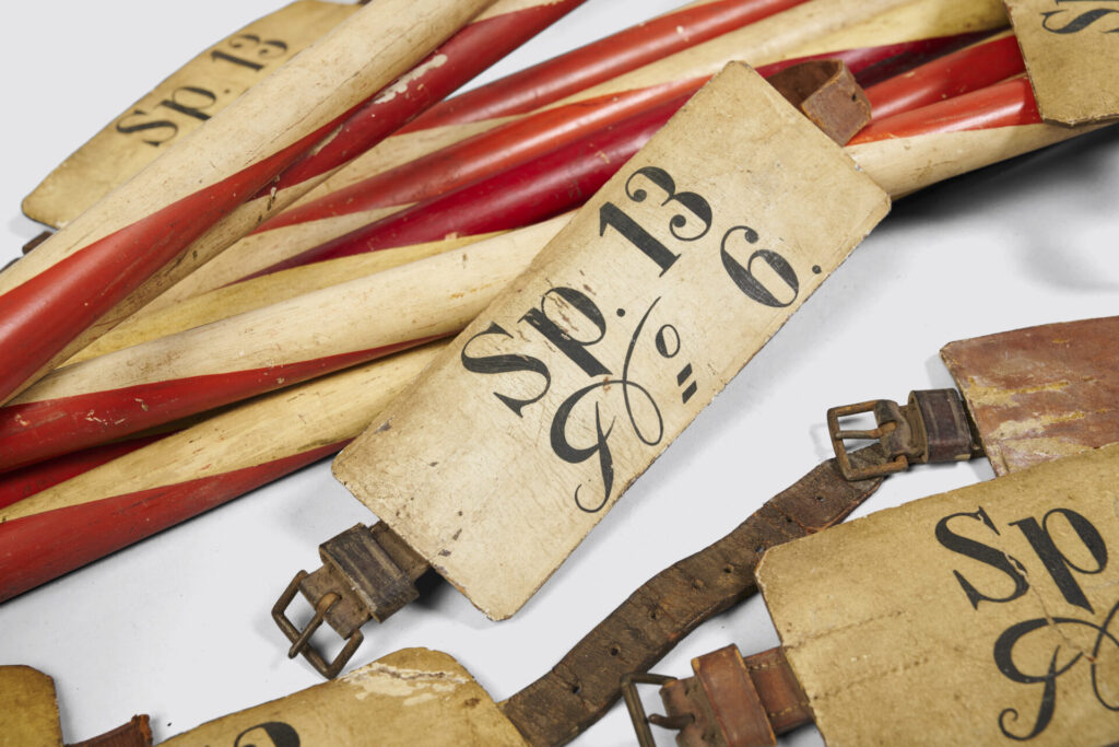 Om het bluspersoneel herkenbaar te maken werden zij voorzien van een witte lederen armband, lengte 210 millimeter, breedte 90 millimeter, met het opschrift: “Sp. 13”, No’s 1 t/m 10. In zwarte letters/cijfers van 33 millimeter (armband 8 is onleesbaar). De armbanden zijn door middel van lederen riempjes om de arm te bevestigen. (enkele riempjes zijn afgebroken)