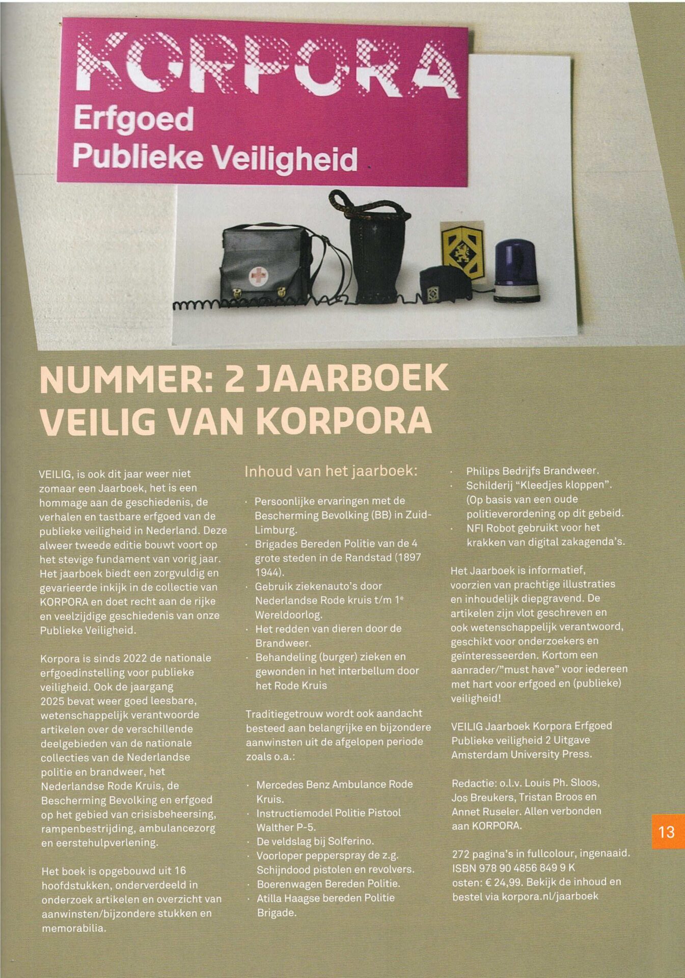 In het jaarboek staat de uitgebreide en op het gebied van de publieke veiligheid in Nederland toonaangevende erfgoedcollectie van Korpora centraal.